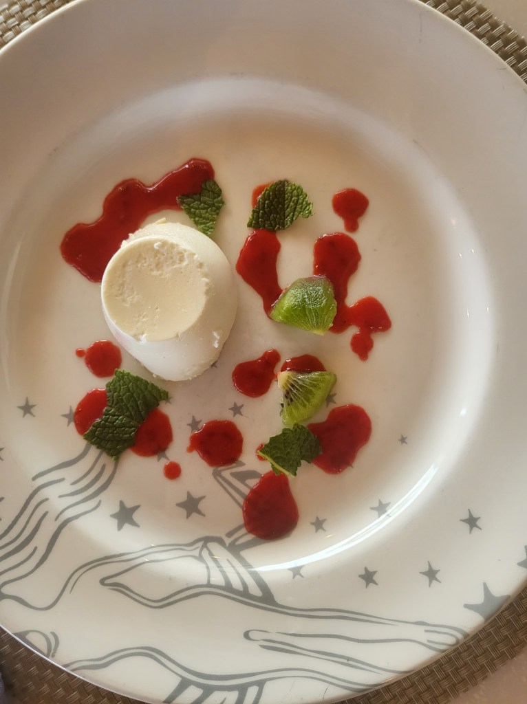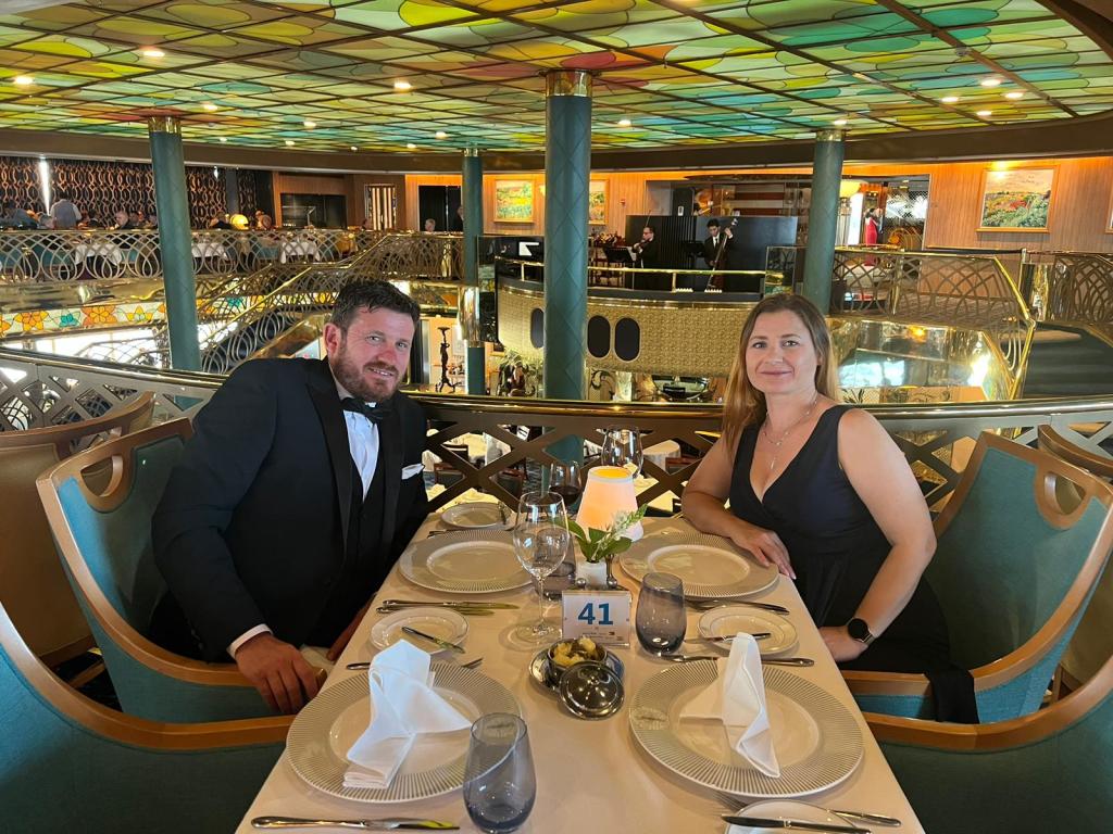 That night we also had the formal event, where we were all invited to dress in our best dresses and suits and go to the auditorium and meet the senior crew members with complimentary canapes and drinks. Following that we went to the restaurant for our meal. Fabulously presented and served as always.