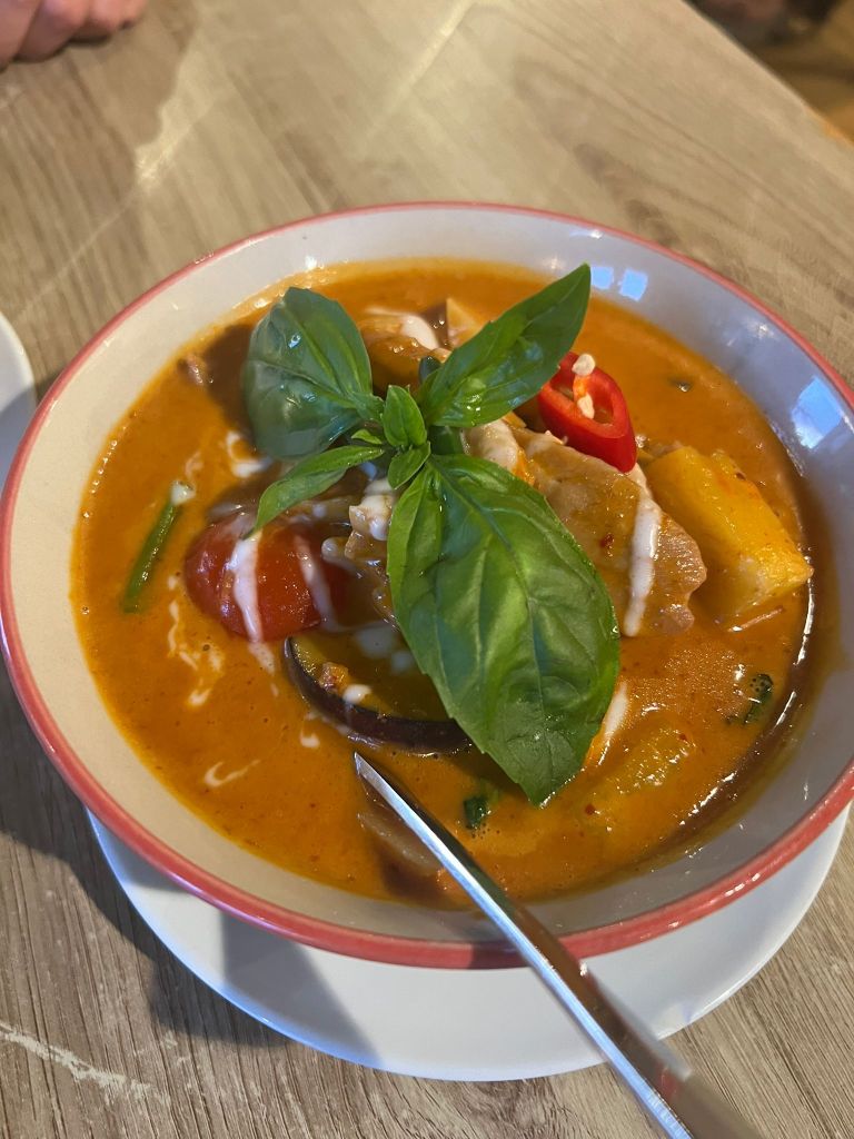 I had the Chicken Massman curry, Ashley had Duck curry and we shared a pineapple rice.