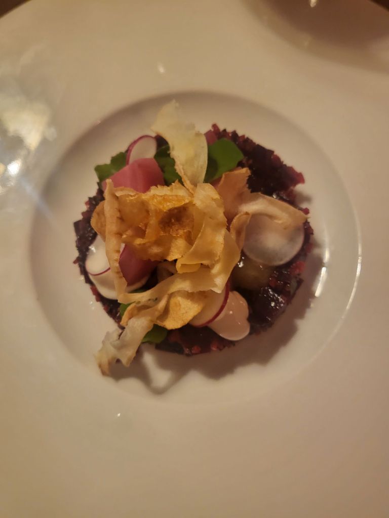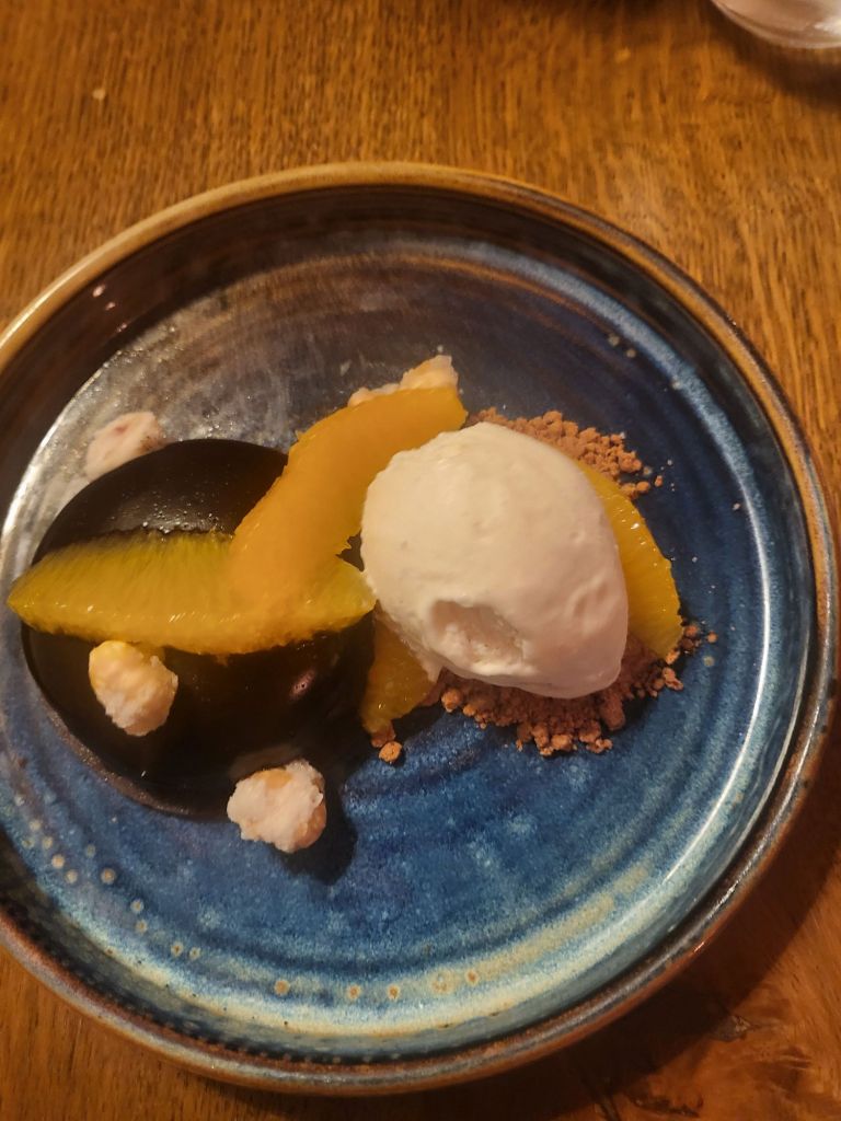 This is not a restaurant for your burger and chips, but for more fine dining in a country pub setting. I chose the roasted beetroot tartare (as main image above) as a starter and steak for main. Ashley went for the duck liver parfait and pork belly ( his photo’s did not come out great. I very naughtily had pudding too